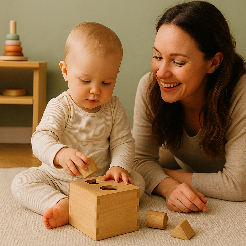 Cube Sensoriel Montessori – Jeu de Tri de Formes et Motricité Fine ÉveilNature™